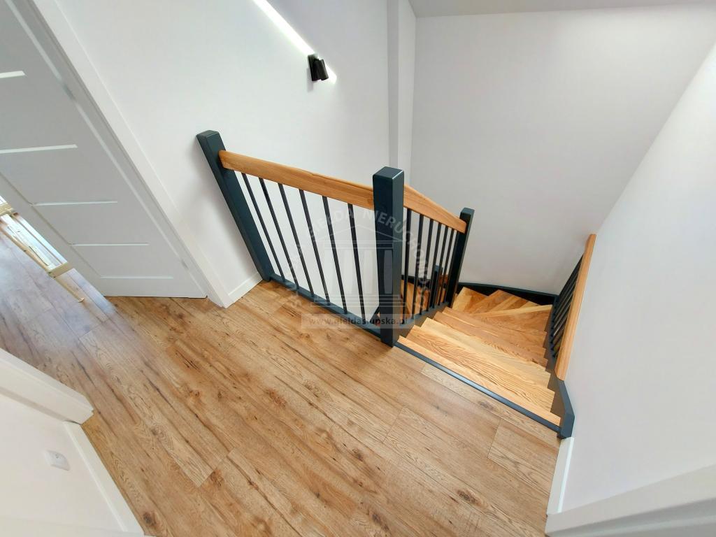 Oferujemy na sprzedaż wolnostojący dom, składający się na parterze z salonu z aneksem kuchennym, pokoju gościnnego, łazienki z prysznicem oraz przedpokoju z wiatrołapem. Na piętrze, dwie duże sypialnie (jedna z wyjściem na balkon), łazienka z wanną oraz komunikacja.