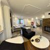 Wnętrza dopełniają eleganckie drzwi z hartowanego szkła, a w salonie znajduje się kominek z wkładem kominowym, wykończony naturalnym marmurem.